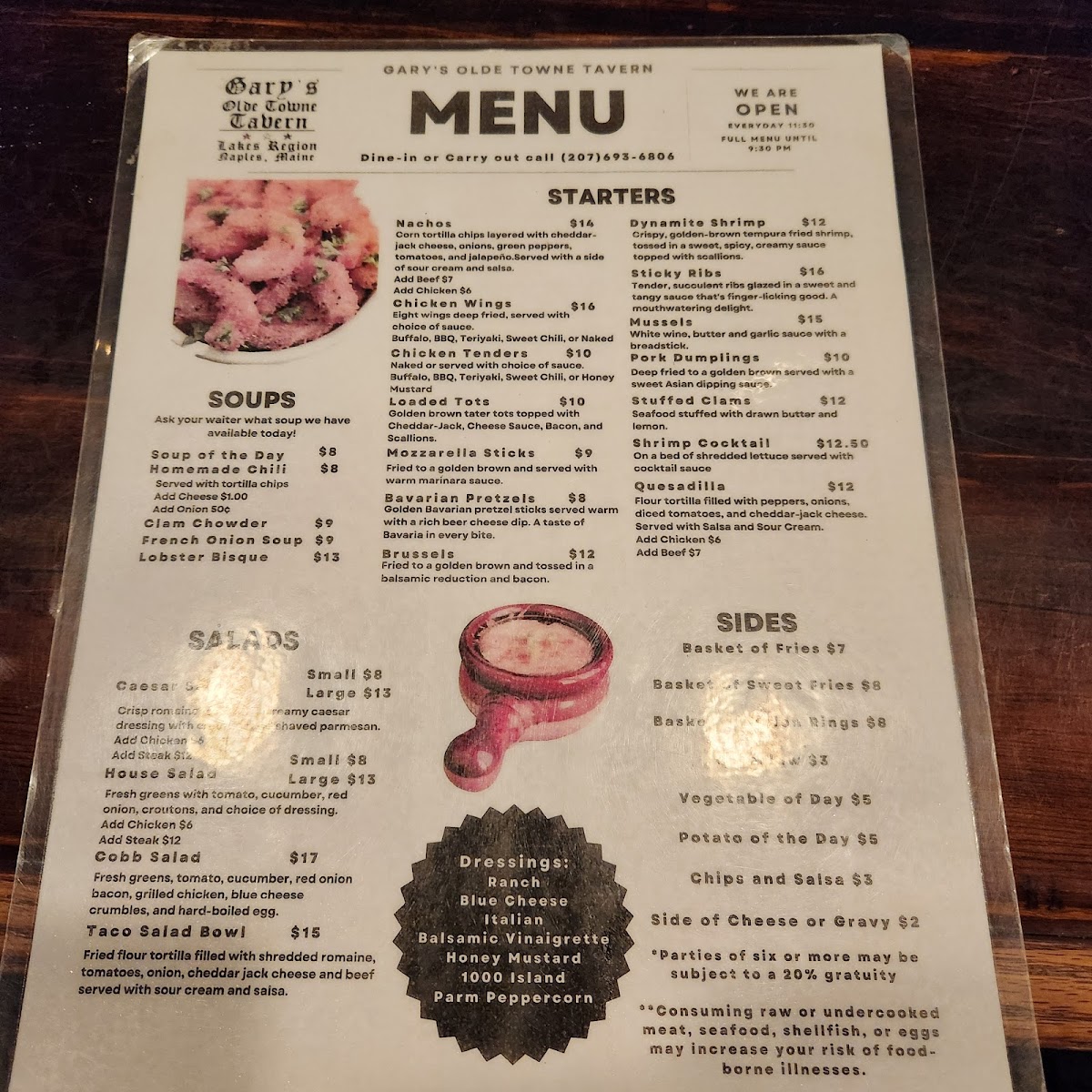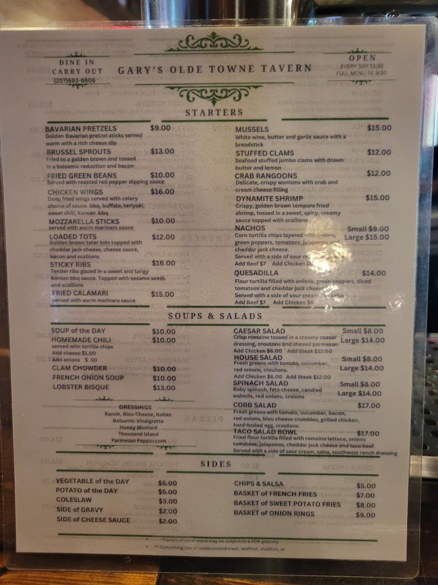 Gary's Olde Towne Tavern offers a menu that feels comfortable and unpretentious, perfect for casual meals and relaxed gatherings. The selection ranges from classic bar bites to hearty sandwiches and satisfying salads, making it easy to find something to enjoy whether you’re stopping in after work, catching a live music show, or meeting friends for a laid-back evening.